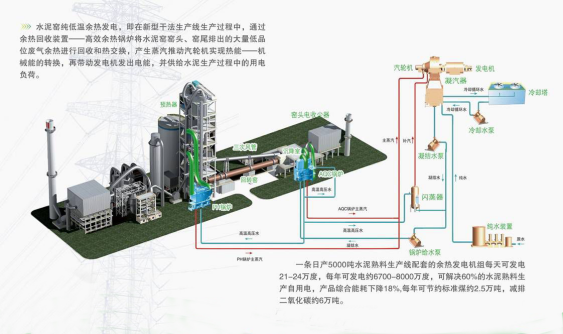 將廢棄的高溫?zé)煔庖胗酂徨仩t,經(jīng)余熱鍋爐換熱產(chǎn)生過熱蒸汽,蒸汽驅(qū)動(dòng)汽輪發(fā)電機(jī)組發(fā)電,達(dá)到余熱回收發(fā)電的目的??衫玫挠酂嵩窗ǎ簾Y(jié)機(jī)環(huán)冷機(jī)余熱,燒結(jié)機(jī)大煙道余熱,水泥回轉(zhuǎn)窯余熱,玻璃回轉(zhuǎn)窯余熱,干法熄焦冷卻過程余熱等等。另外,如果工廠蒸汽管網(wǎng)中有多余蒸汽,亦可通過對(duì)蒸汽的壓力、流量、溫度的相應(yīng)處理后,驅(qū)動(dòng)汽輪發(fā)電機(jī)組實(shí)現(xiàn)發(fā)電。